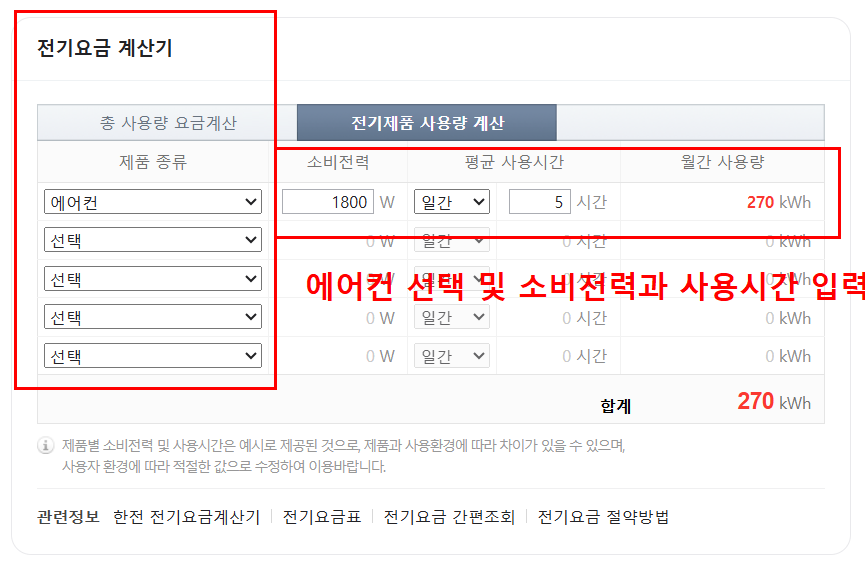 에어컨 전기세 계산기 사용법 (네이버 기준)