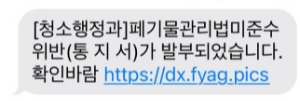 [청소행정과] 폐기물관리법미준수 위반(통지서)가 발부되었습니다. 확인바람 https://dx.○○○.pics