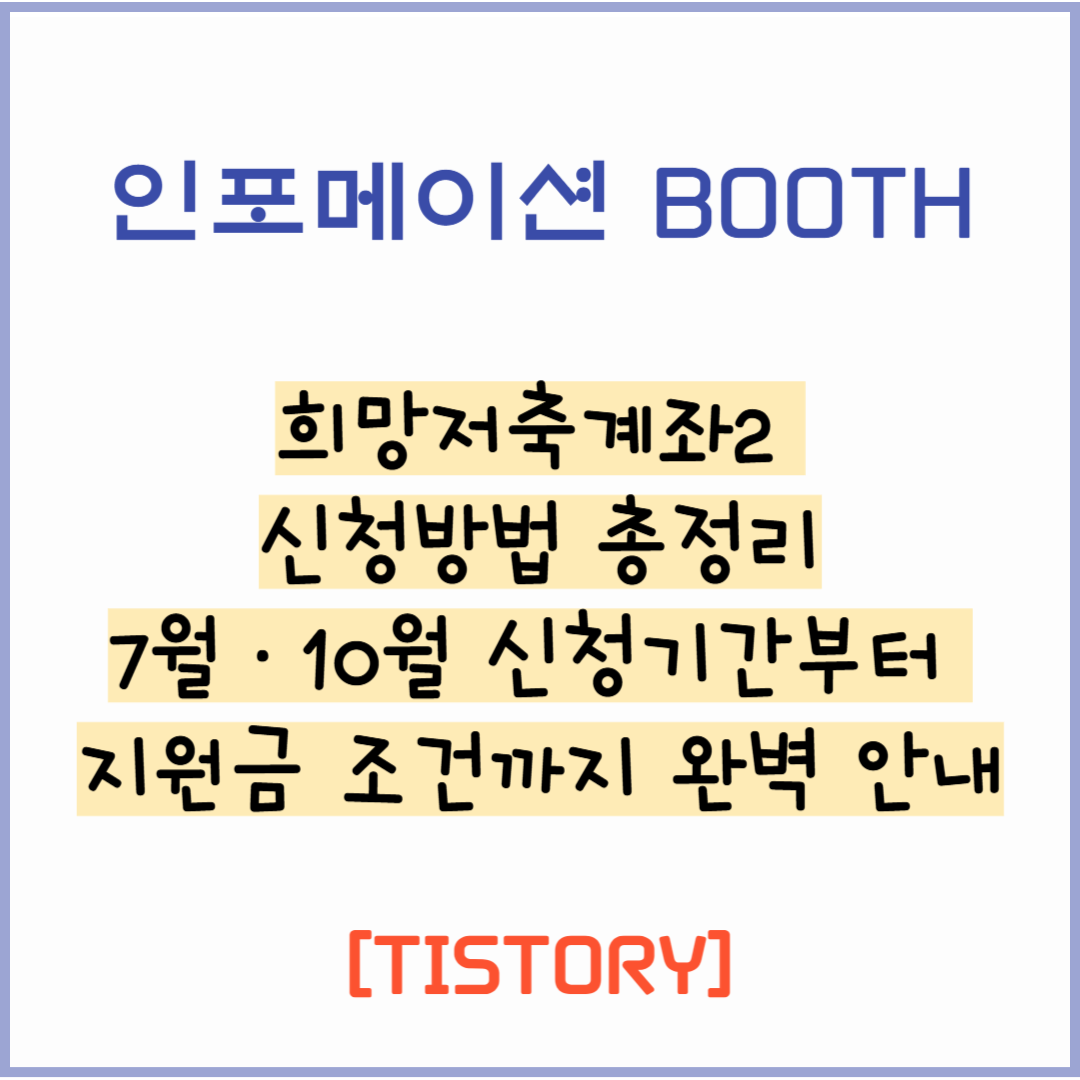 ‘희망저축계좌2’는 매월 10만 원의 저축으로 정부지원금까지 포함해 자산을 2배로 늘릴 수 있는 절호의 기회입니다. 2025년 하반기에는 7월과 10월 단 2번의 신청 기회만 남아 있으니, 해당 기간을 놓치지 말고 꼭 주민센터에 방문해 신청하세요!