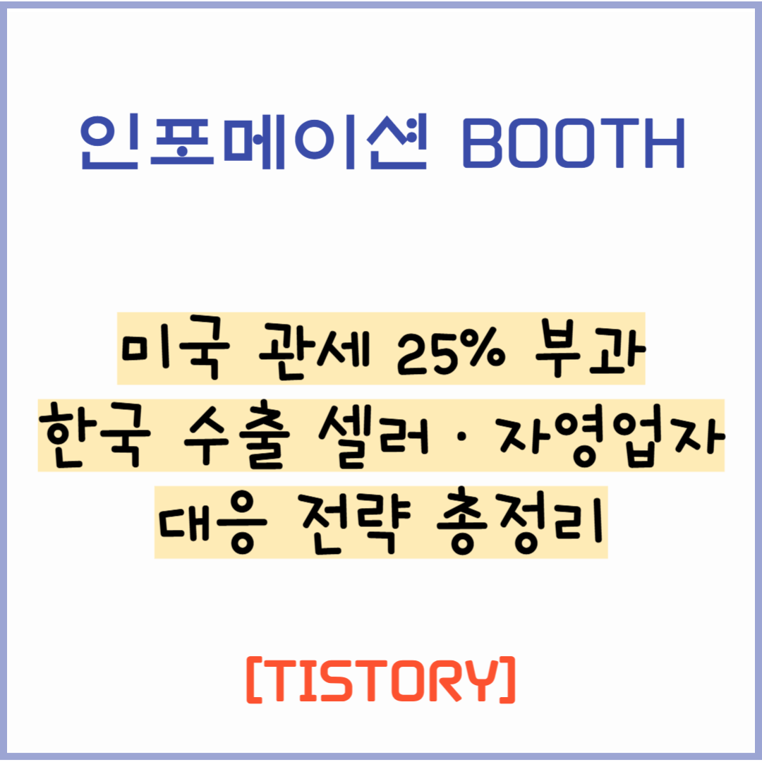2025년 8월부터 미국이 한국산 수출품에 25% 상호 관세를 부과합니다. Shopify, Amazon, Etsy 등 미국향 수출을 하는 자영업자와 쇼핑몰 셀러는 영향을 받을 수 있습니다. 관세 적용 여부부터 대응 전략까지 한 번에 정리합니다.