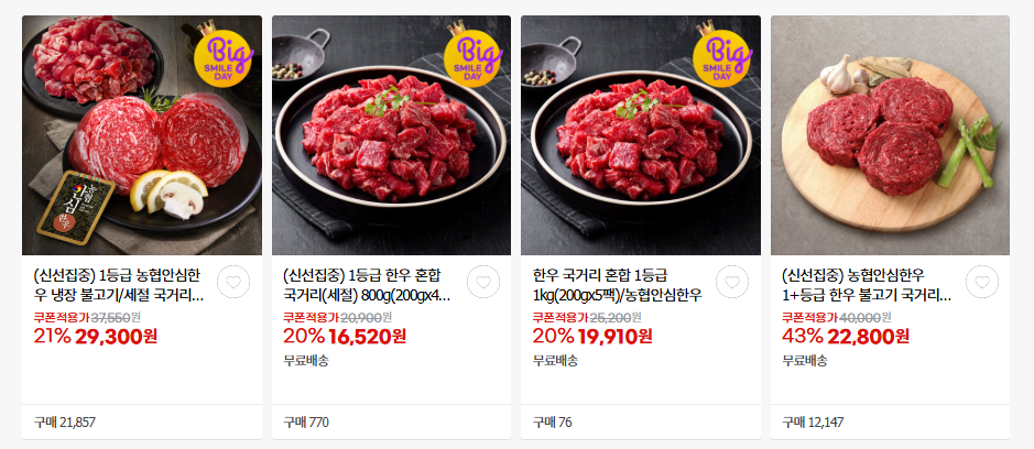 집에서도 간편하게 주문할 수 있도록 대형 온라인몰에서도 ‘소프라이즈 한우먹는날’ 기획전이 열립니다. 각 플랫폼별 행사 페이지를 통해 등급별 한우 세트를 바로 구매할 수 있습니다.