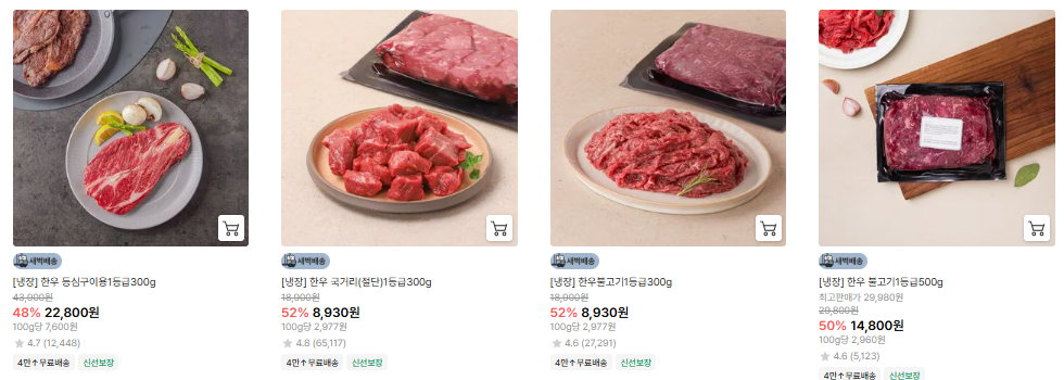 온라인몰에서는 특히 한우 선물세트, 냉장팩 포장 상품, 한정 수량 기획세트 등 실속형 상품 구성이 많아 빠른 품절이 예상됩니다.