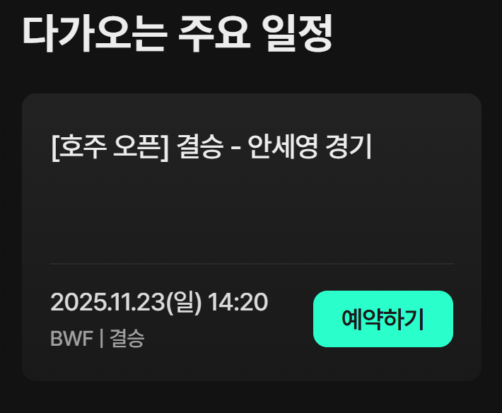 | 안세영 준결승 2025 BWF 호주오픈 4강 일정 실시간 중계방송 시청하기 (0) | 2025.11.22 |